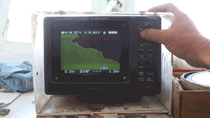 Salah Eddine Bchareg and his crew watch the sea as they set out from the port of Zarzis, Tunisia.